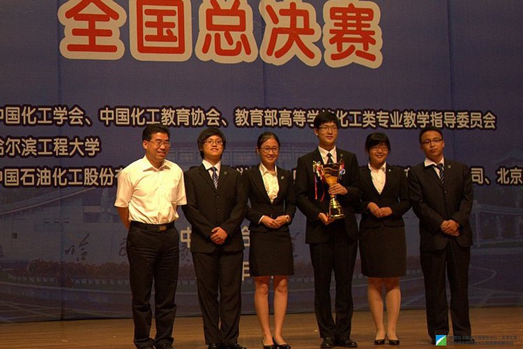 On August 21, 2013, the GB3432 Team composed of five 2010undergraduates, Zhaoyang Duan, Jingnan Li, Xunzhi Liu, Guoqiang Shen and Jiawei Wen went to Harbin Engineering University under the leadership of teachers Chunjiang Liu and Hong Sui to attend “The 7th Sinopec-Mitsui Cup National College Students Chemical Design Competition in 2013”. The team was guided by Professor Xingang Li, Associate Professor Hong Sui, and Associate Researcher Hong Li of the Distillation Center. With excellent works, solid skills and excellent performance, they defeated more than 1,000 teams from164 universities including Tsinghua University and Zhejiang University with absolute advantage, winning the first place in the national competition and the gold medal.
