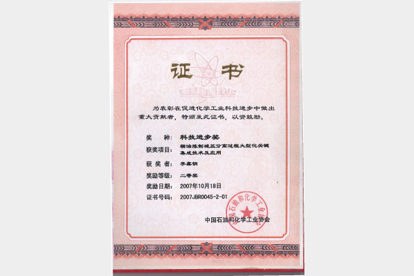 烏魯木齊石化煉油廠常減壓塔技術(shù)改造新疆維吾爾自治區(qū)人民政府科技進(jìn)步獎(jiǎng)二等 -