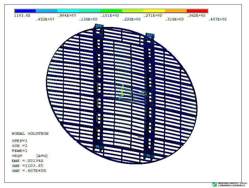 通過動態(tài)力學(xué)計算,對塔內(nèi)件進(jìn)行操作狀態(tài)下的機械性能分析,主要針對大型塔器中塔盤結(jié)構(gòu)強度、集油箱結(jié)構(gòu)強度、內(nèi)件的支撐部件如支持板和支撐梁等強度的計算與分析,在此基礎(chǔ)上優(yōu)化塔內(nèi)件結(jié)構(gòu),實現(xiàn)微形變控制,保證了內(nèi)件的機械性能和內(nèi)件的水平度要求,以滿足工藝要求。