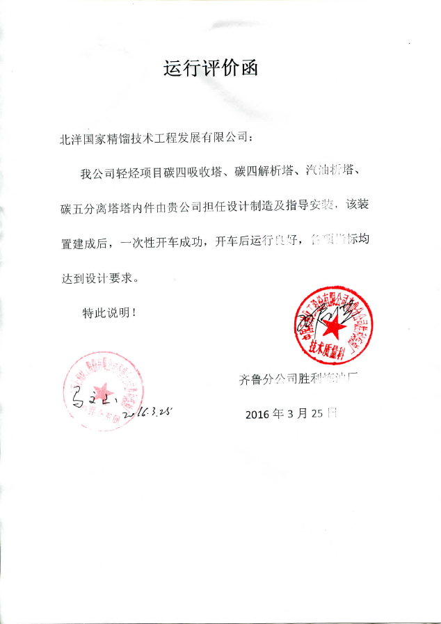 中石化齊魯分公司運(yùn)行評(píng)價(jià)