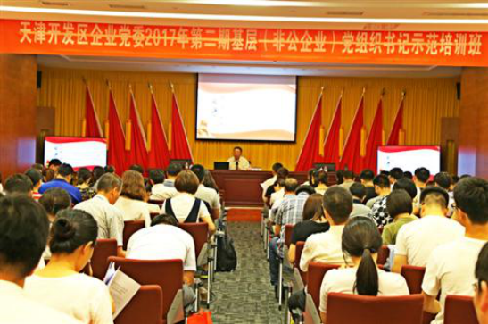 2017年7月13日,企業(yè)黨委在開(kāi)發(fā)區(qū)黨群服務(wù)中心舉辦了2017年第二期基層黨組織(非公企業(yè))書(shū)記示范培訓(xùn)班,開(kāi)發(fā)區(qū)工委副書(shū)記張青同志出席并講授主題黨課,我公司黨支部書(shū)記王哲參加了培訓(xùn)。